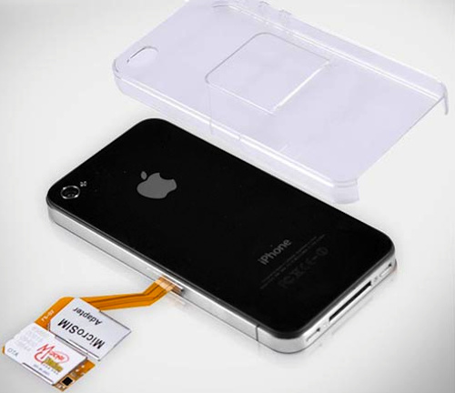 This transparent iPhone 4 case doesn’t exactly look great, but it comes with a clever feature: A dual-SIM adapter. It means that you can keep two SIM cards attached to your iPhone and toggle between them using a menu setting.
