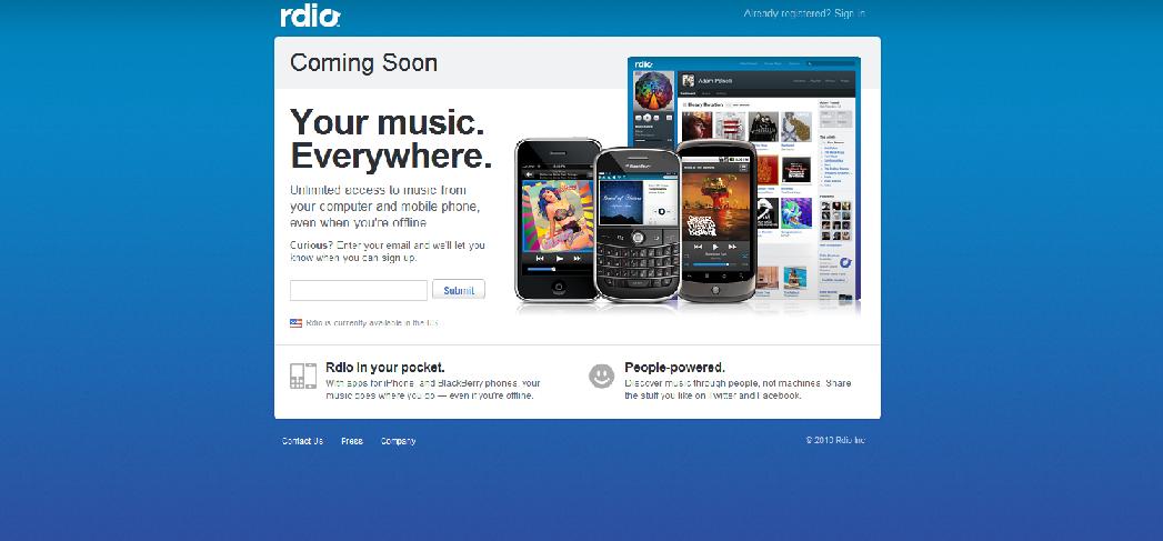 Rdio offers instant access to more than 5 million tracks from all the major labels and several indies to listeners in the United States and Canada through a web browser, downloadable software or mobile app. It’s available for free for three days and then for fees of $5 (web only) or $10 (web plus mobile).