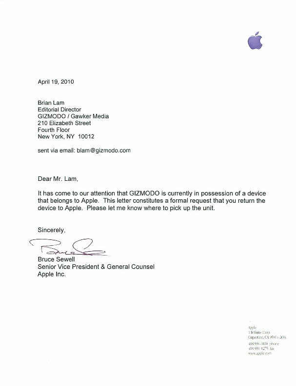 Apple wants its secret back, to see the letter please click on GIZMODO.COM